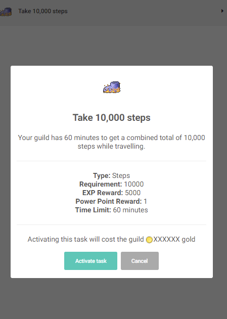 - Activating a task costs XXX amount of gold.
