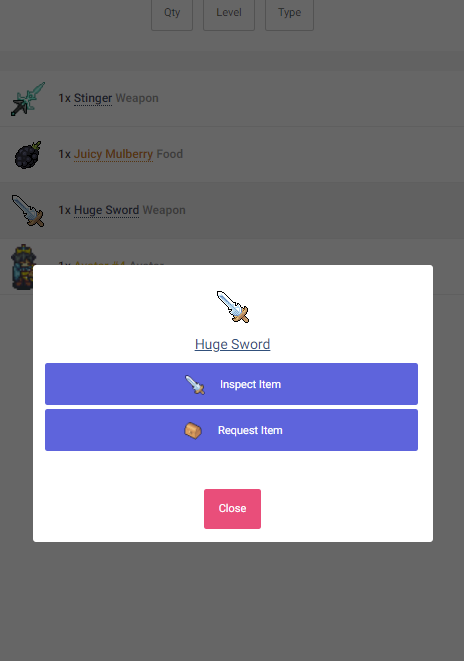 Players are now able to submit items to the guild armoury. Any member within the guild can the request any amount of items from the armoury and the guild leader can accept or reject the request. This feature is still a bit bare-bones at the moment, however I have plans to enable the ability for leaders to send items directly from the armoury.